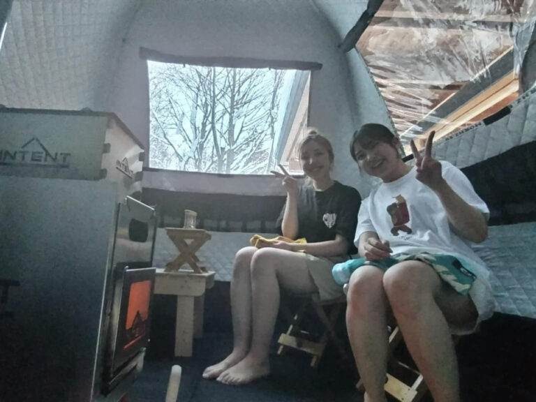 テントサウナ体験では歩き終えた後は、温まったテントサウナでリラックス。